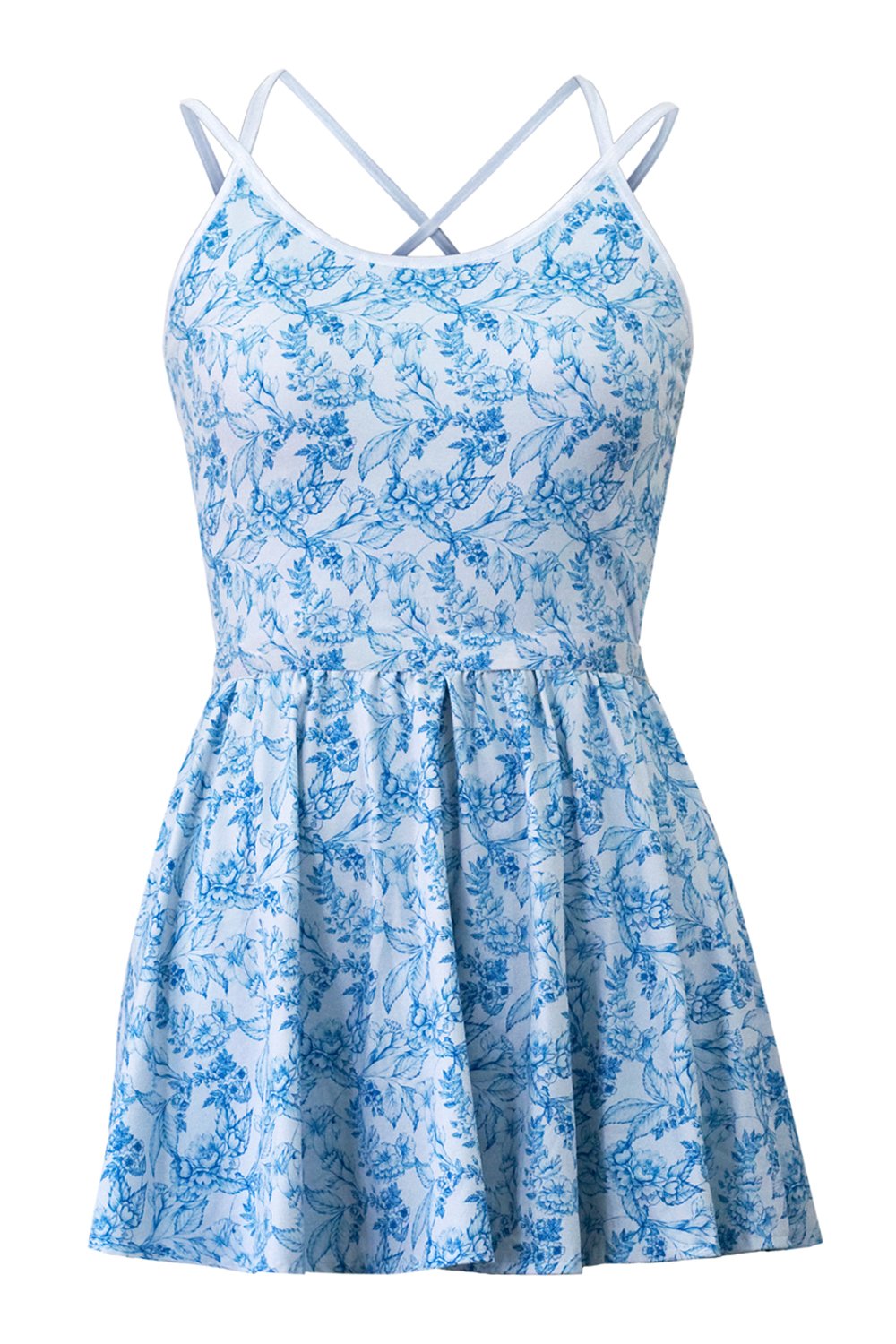 This stylish tennis dress is very feminine and flattering. The delicate criss-cross straps and lightly gathered skirt create a very feminine silhouette. The exclusive hand-drawn textile design Daffodil Oasis gives this tennis dress an unusual bold pop of colour.